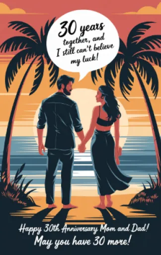 Design a heartfelt anniversary card for my parents celebrating 30 years together. Add a message of admiration for their journey and love