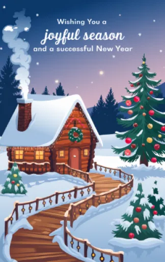 Design a festive holiday card for my team at work. Include a professional yet warm message wishing them joyful season and a successful New Year