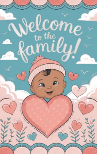 Create a joyful card to welcome a new baby. Congratulate the parents and include a sweet message about their growing family.