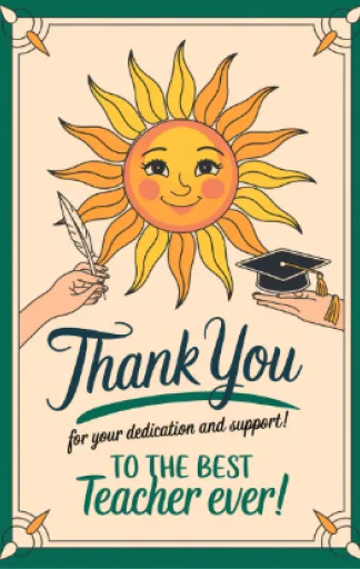 Generate a thank-you card for a teacher. Use a warm and professional tone to express gratitude for their dedication and support