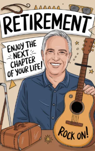 Make a cheerful retirement card for a colleague. Include a lighthearted message about enjoying the next chapter of their life